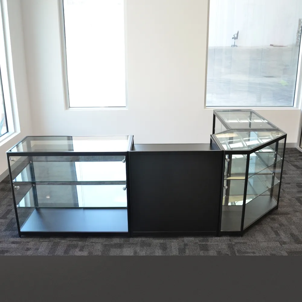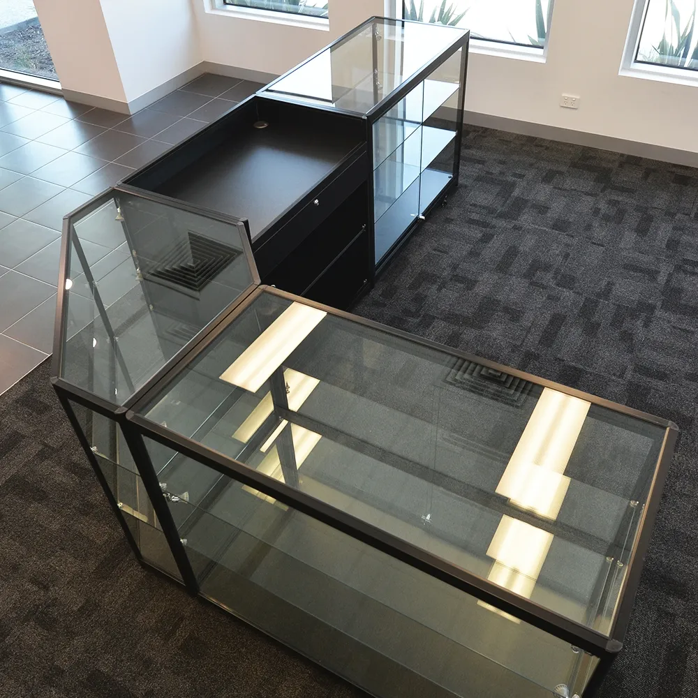 The nearly frameless design of the cases use aluminium with a black finish for a modern look that complements any decor. All showcases ship fully assembled to be ready to go out of the box, saving you time from using complicated instructions that to set-up the retail cabinets in hours. The bases have adjustable feet to ensure that case is level when used on uneven floors. Order today for fast shipping to anywhere in Australia, only from Slimline Warehouse!
