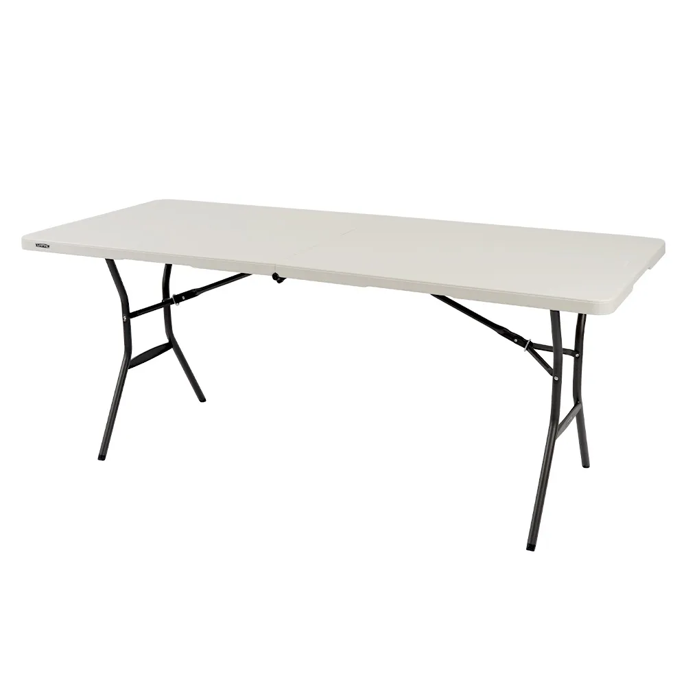 - 6ft folding table has handle for easy carrying & is made from hard-wearing HDPE plastic