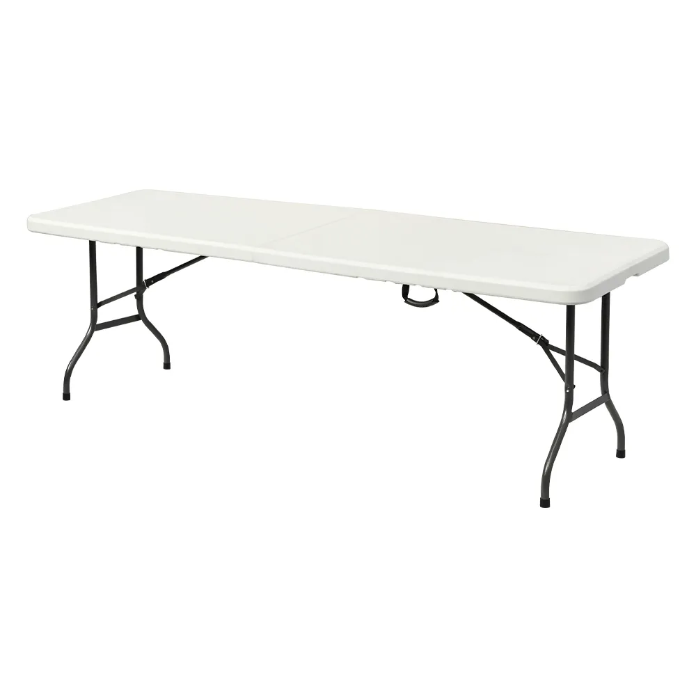 - 8ft folding table has handle for easy carrying & is made from hard-wearing HDPE plastic
