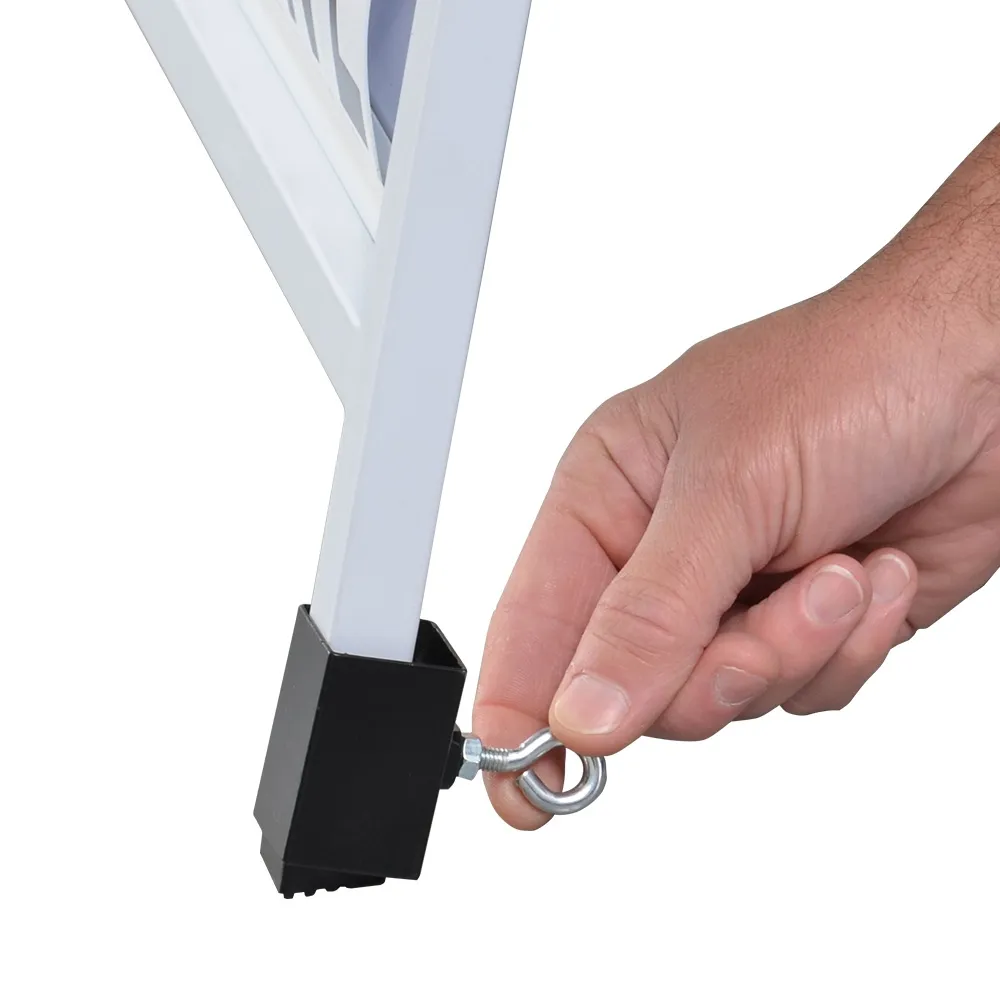 The strap connectors for A-frames, great for use with sandwich boards, are adjustable to fit a wide variety of units. The tube can go squared or round legs up to 29mm thick, with the eye-hook tightening to ensure the holder remains in place whilst in use. This hook is used with ties to attach weighted sand bags to your display quickly without any tools needed. Order today from Slimline Warehouse by 3pm EST to receive same day Australia-wide shipping with this and most other in stock products!
