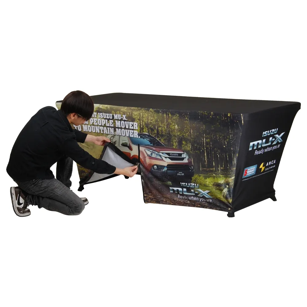 - Trade show table cloths include both table throw & portable table for all-in-on kit!