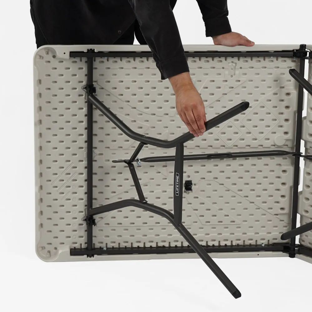 - 8ft folding table has handle for easy carrying & is made from hard-wearing HDPE plastic