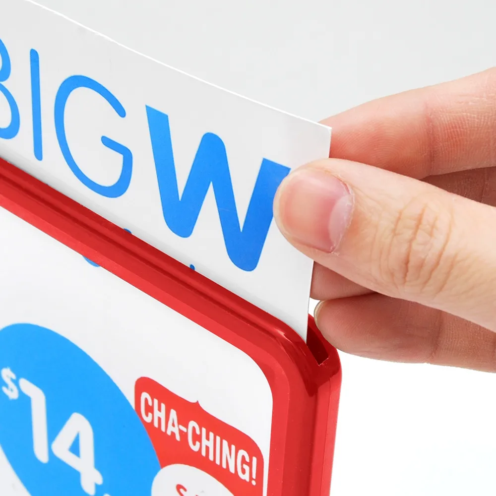 This red landscape price sign comes with a matte lens which helps to not only protect your graphics from dust but also allows your signage to be easily readable. Keeping your display looking professional at all times. The signage uses a slide-in design to easily change marketing material within seconds! Purchase your frames today before 2 PM AEST to receive same day despatch to anywhere in Australia!