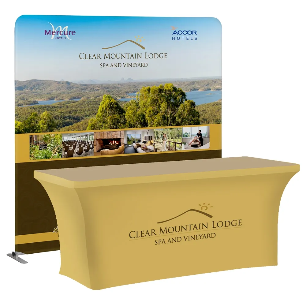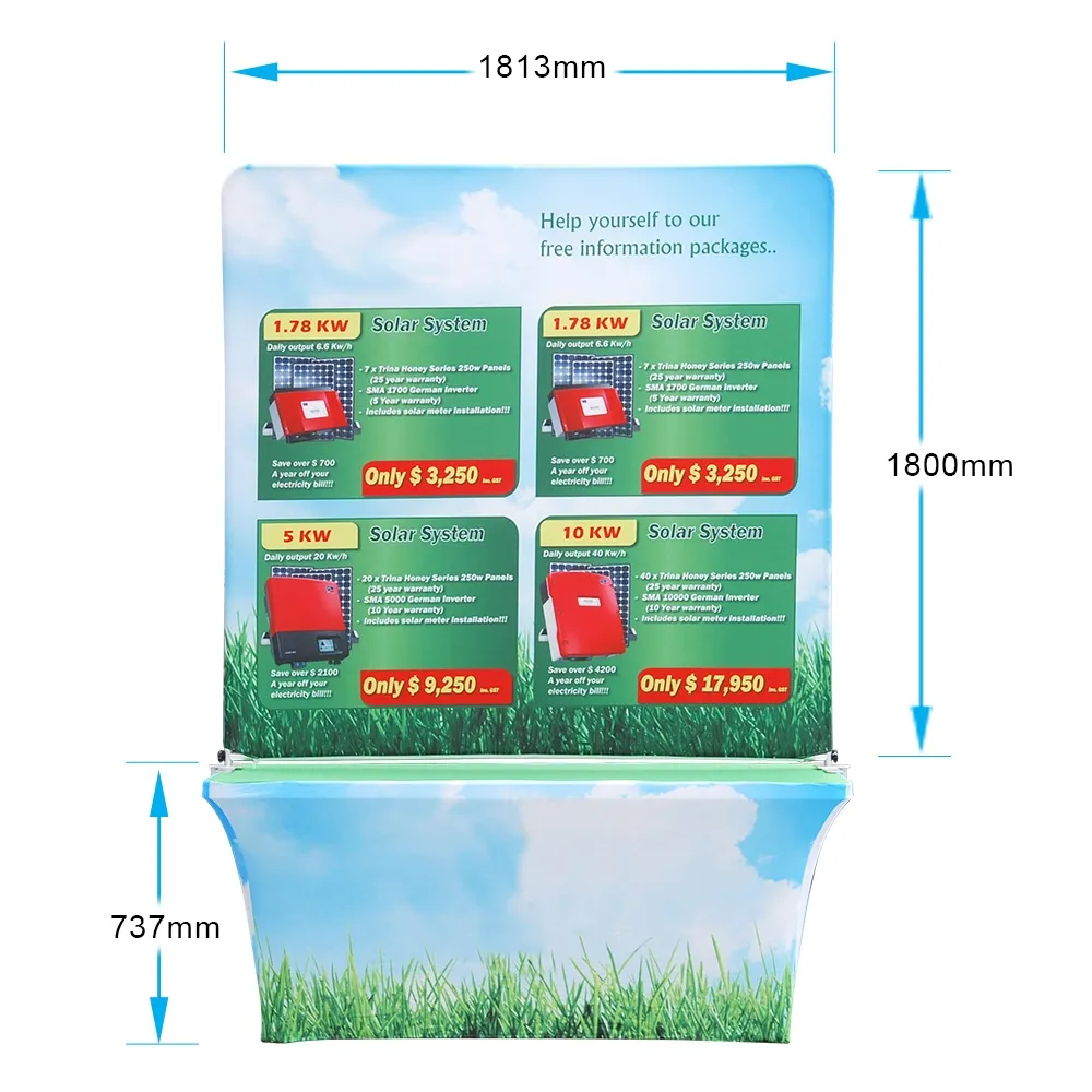 - Large 1813 x 1800mm banner displays custom graphics to act as a backdrop or table header