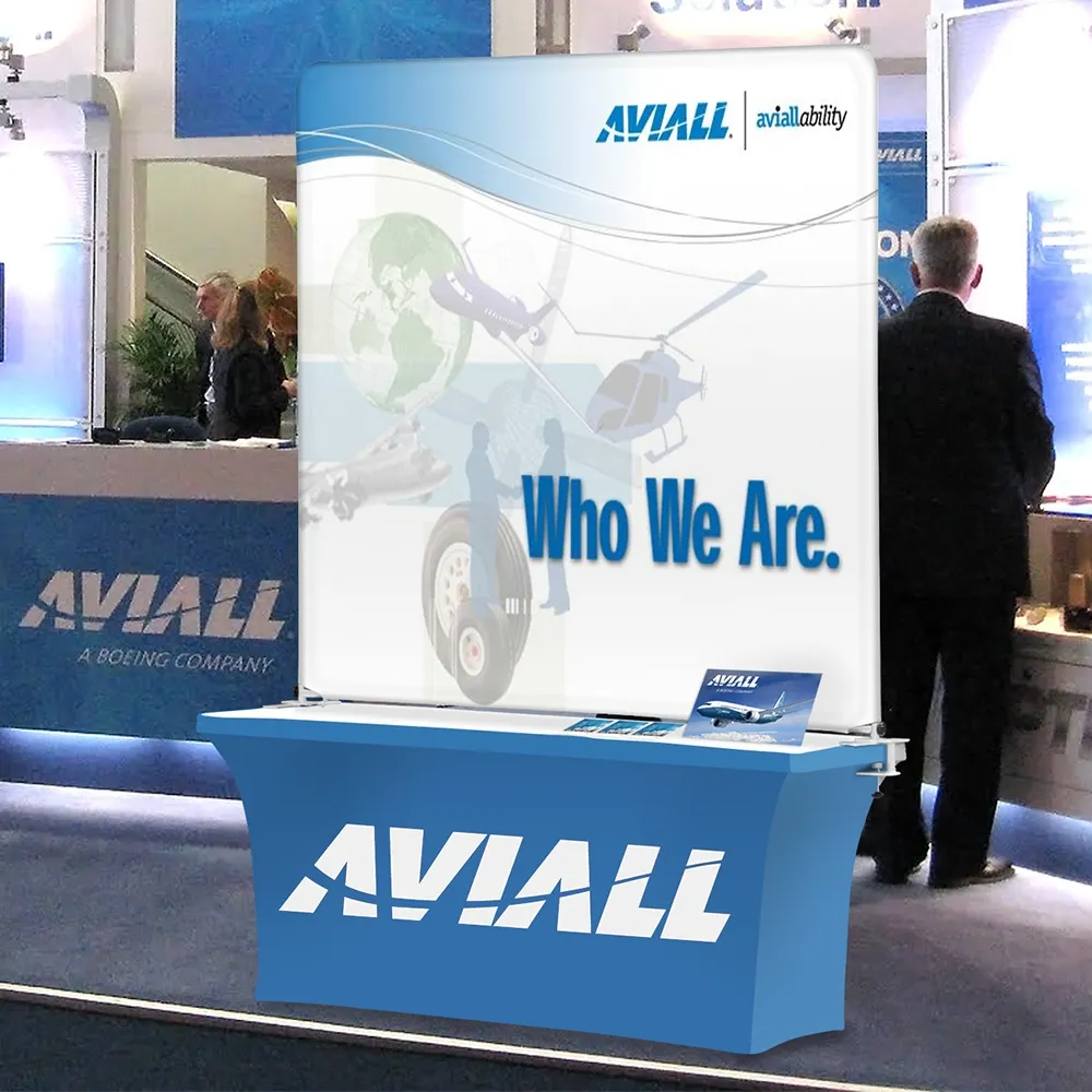 - Trade show kit display includes pop up 1.8 x 1.8m backdrop with custom printing!