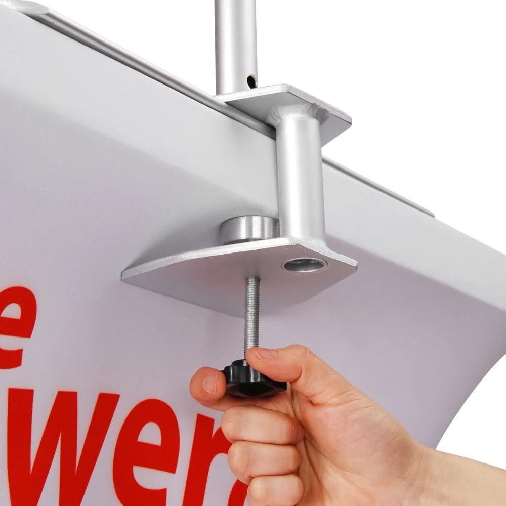 - Versatile display can be placed atop table using clamps or on floor using feet