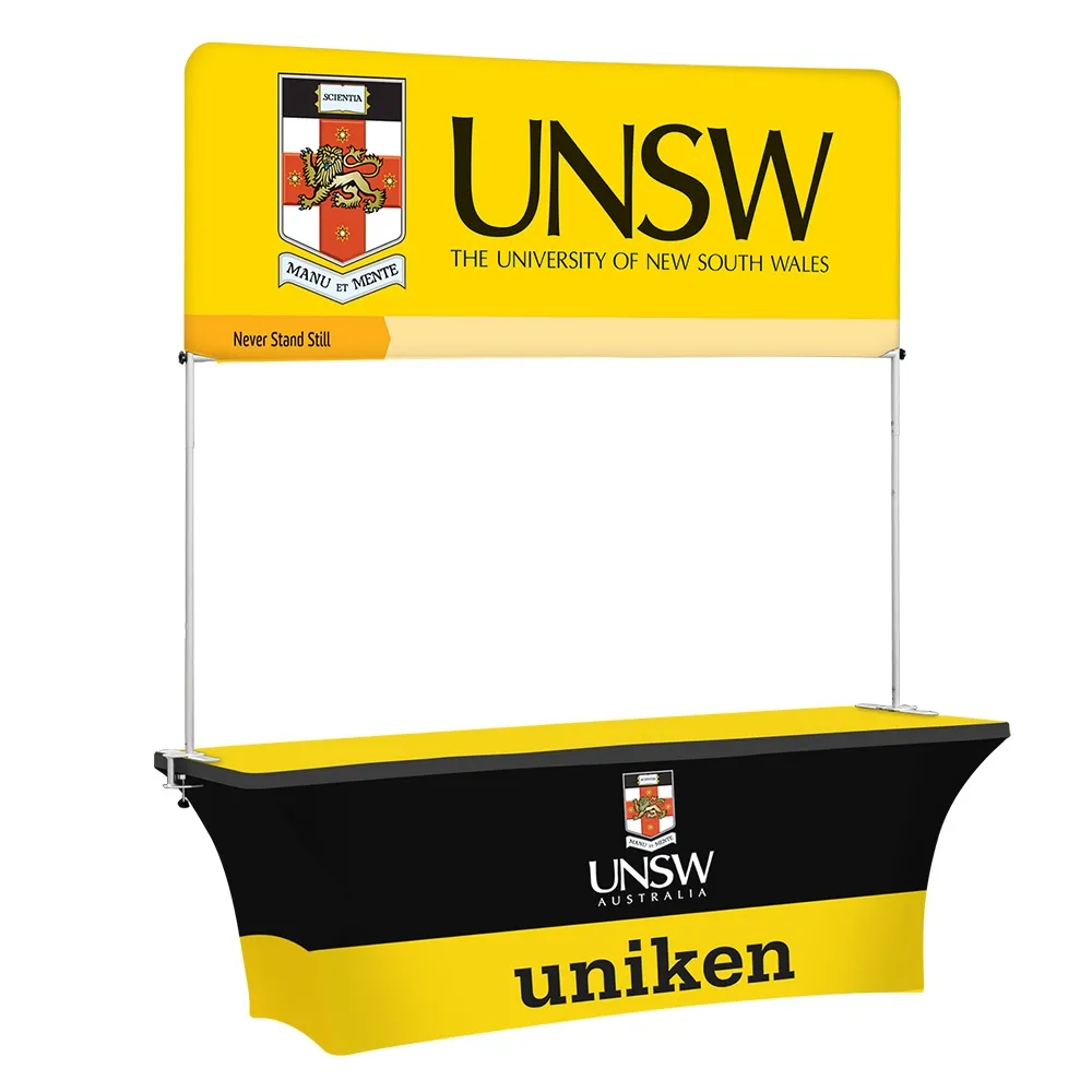 • Tabletop trade show displays use a 2-sided 2420 x 883mm custom print header