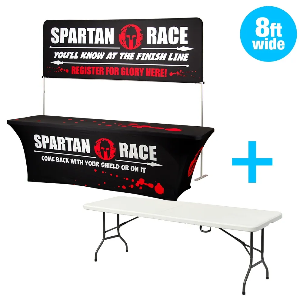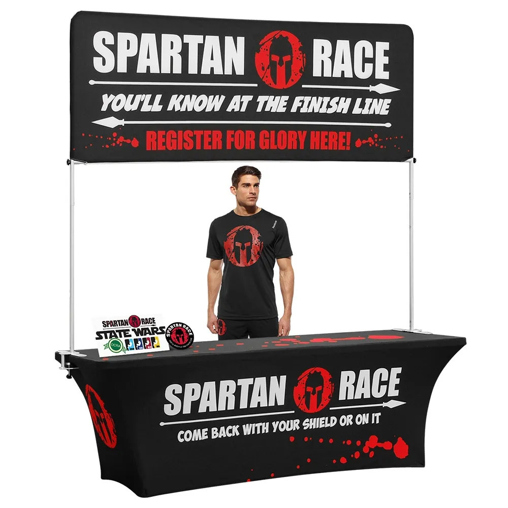 - Portable exhibition kit has custom stretch tablecloth with designs printed in full colour