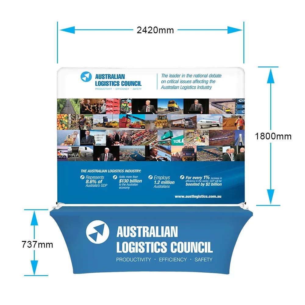 This unit has a quick setup design that requires no tools for assembly, with the backdrop utilising snap together aluminium poles. The table throw is stretched over the table, and the printed backdrop has a zipper to be placed around the frame. Both the tablecloth and fabric backdrop are machine washable for easier cleaning in between uses and made of flame retardant material for safety. Slimline Warehouse provides fast shipping to anywhere in Australia from our warehouse in Melbourne, buy online today for quick dispatch to use this unit at your upcoming events!
