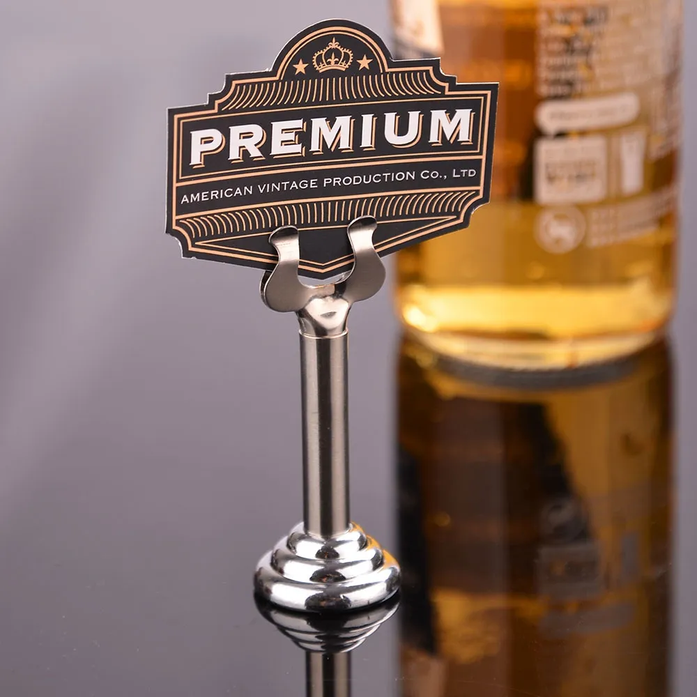 - Table number stand has classic harp design using two prongs to hold cards in place