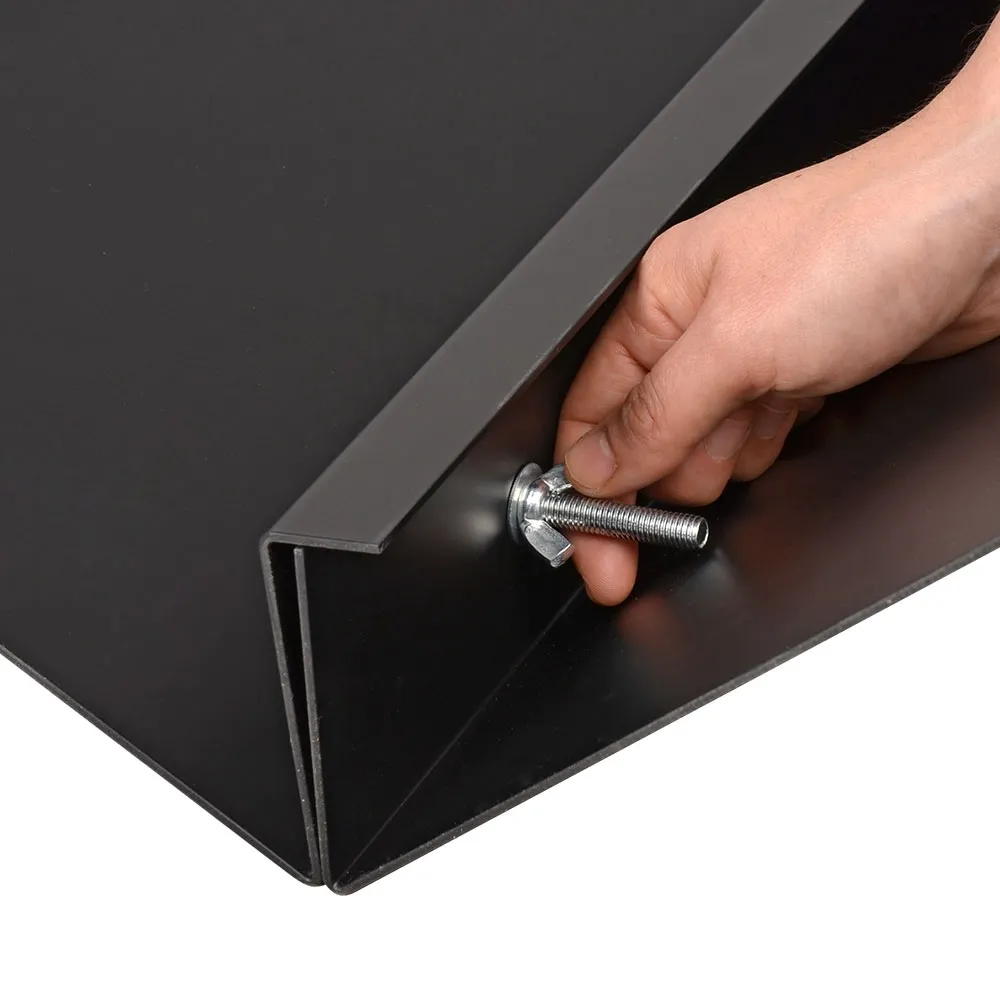 This floor sign stand, teepee poster stand is 1000mm wide, and able to hold graphics that are up to 1800(W) x 1600(H) mm in the base. The base features a centre channel designed to hold substrates that are between 3mm & 20mm. Set-up of the display is simple using only the included hardware to securely fasten your rigid sign board (not included) to the stand.