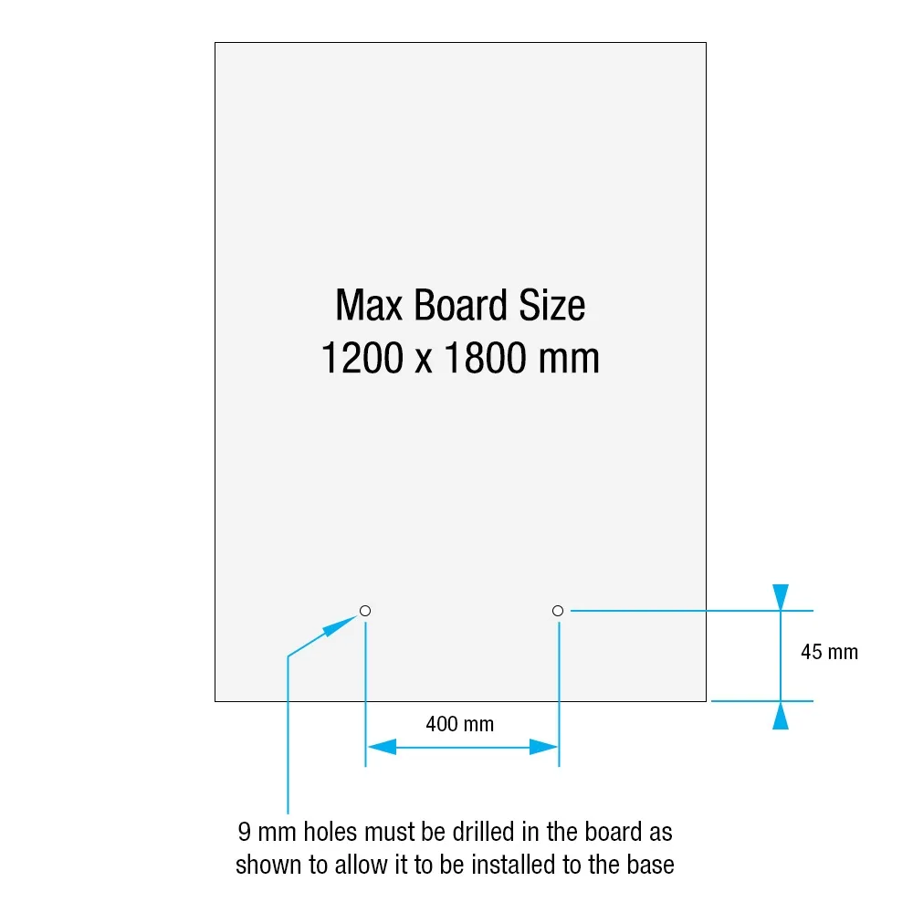 | Maximum recommended board | 1200 x 1800 mm |