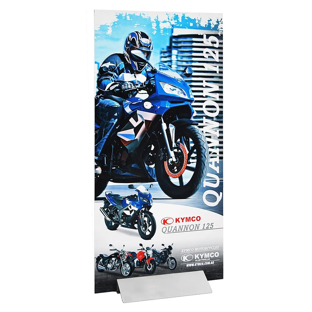 The two sides of the folded 2mm steel base simply clamp the sign board in position and provide a stable base that allows you to free stand even large signs of up to 180cm high and 120cm wide.