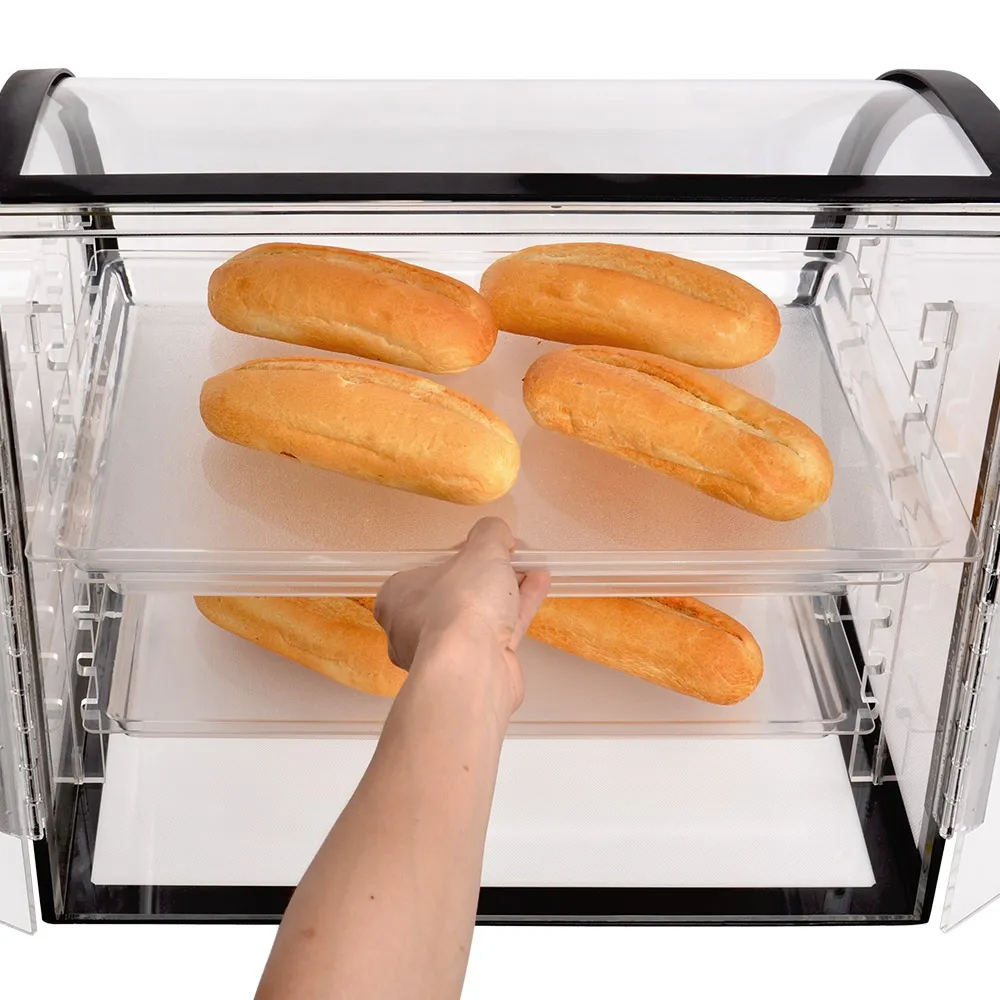 The acrylic food displays are rated for dishwasher use as well, making it easy to wash them and put them back to use! Having a number of trays on hand is helpful as once one tray has sold out of items, instead of having to individually place baked goods back on the tray, you can simply remove the bakery trays and replace with one that is full of pastries, donuts, cupcakes, muffins, & ; more delicious items!