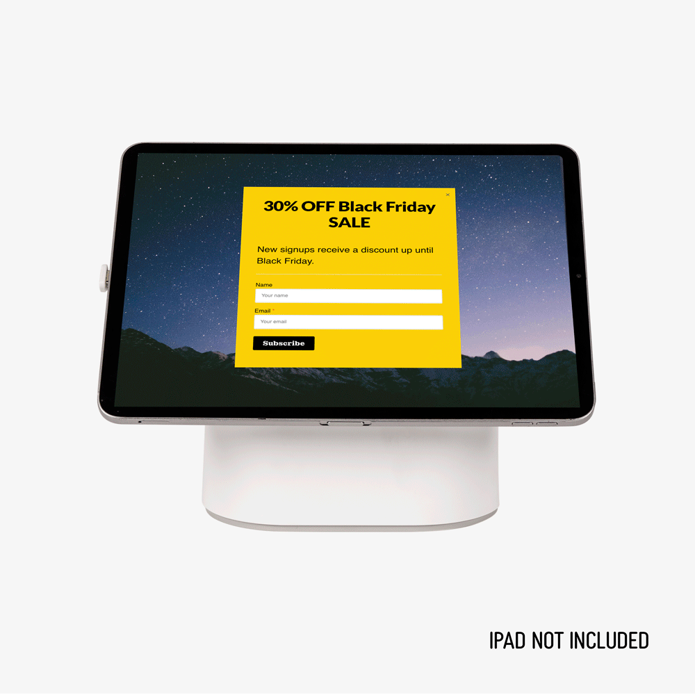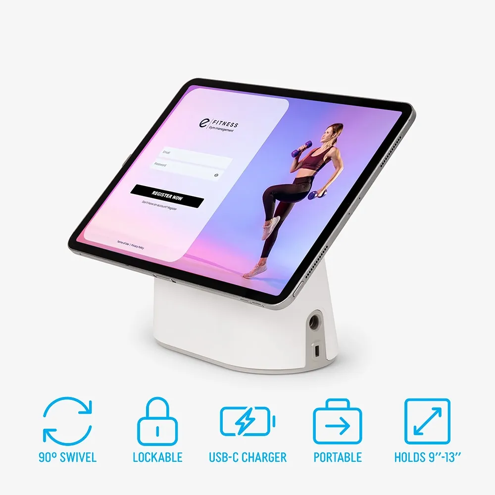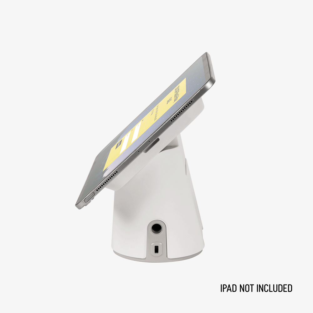 Universal POS Tablet Stand puts your iPad or Android device front and centre on the counter with a compact base that keeps things tidy. The peel-and-stick plate bonds fast and holds firm, so you get a clean, professional setup without clips or drills. Switch between portrait and landscape to suit menus, checkouts, bookings or sign-ins. Cable routing stays discreet. Tablet not included.