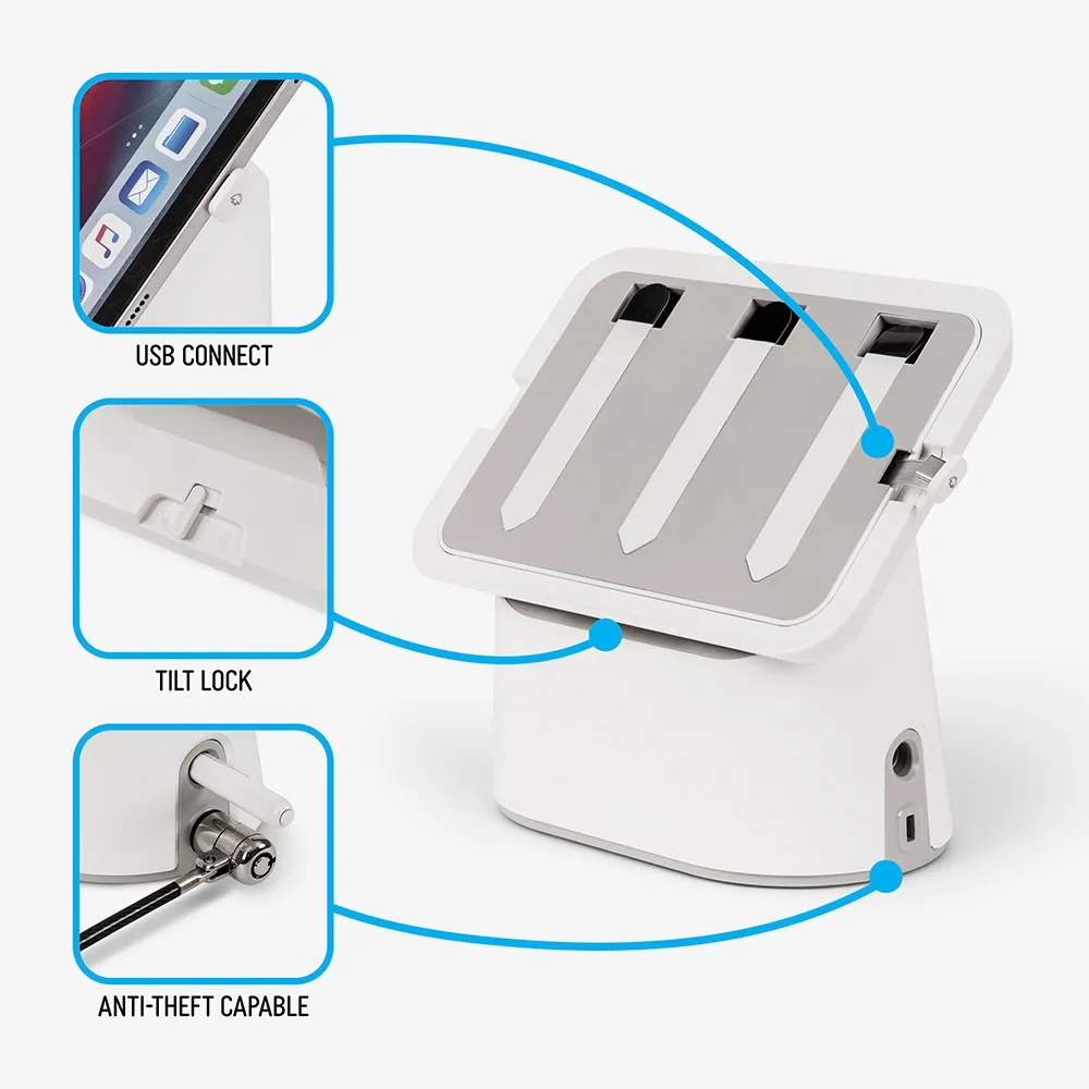 - Universal adhesive mount works with most iPad and Android models