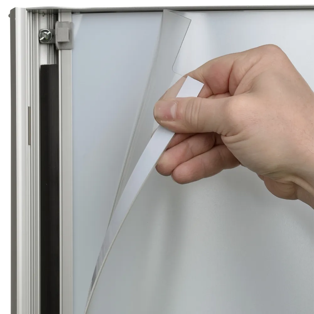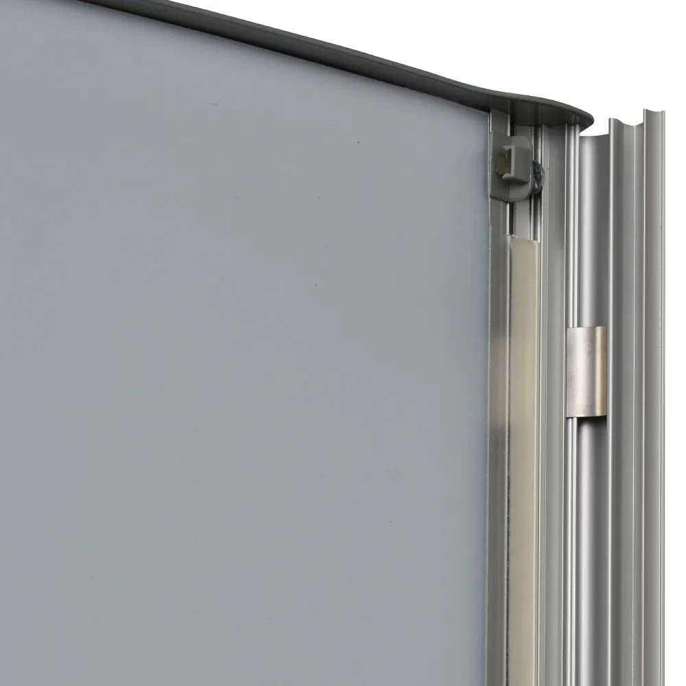 Looking for a light box stand to be seen from across a room? The freestanding lightbox is 1720mm tall to be easily seen and is illuminated as well for an added dimension of marketing effectiveness. The 2x 58W fluorescent bulbs inside evenly lit the posters to prevent hotspots really draw in someone walking nearby. The 1.5m long power cord makes it easy to plug into a power port and light up the display. The stand has a clipframe design to make switching out posters fast and easy without any additional tools necessary. When in the display, the poster has a 1700 x 780mm visible area.