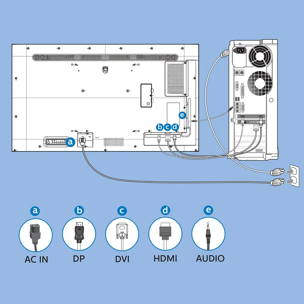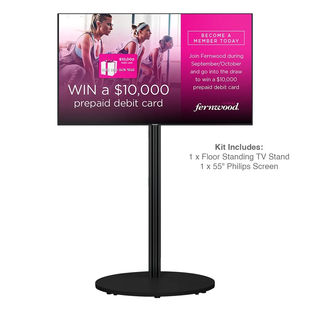 - Free standing digital signage include 55" Philips commercial grade TV w/3-year warranty