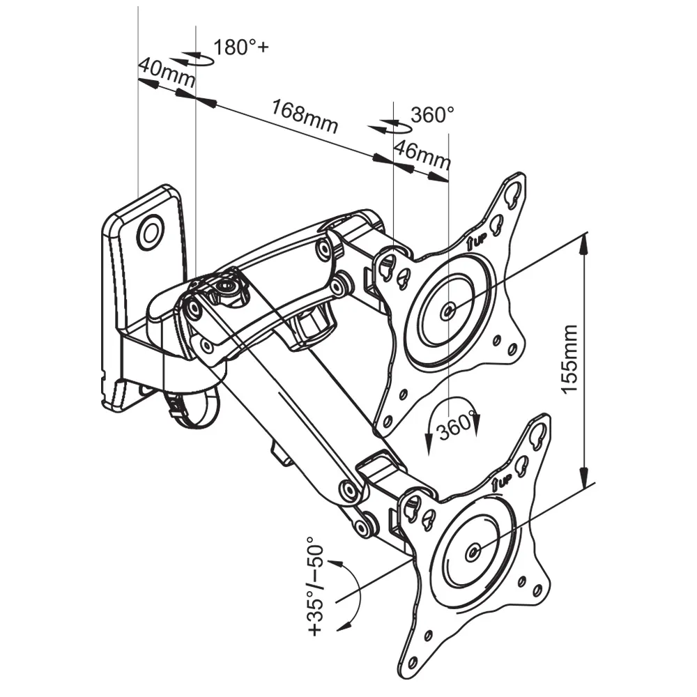 • Display a 17" to 27" weighing up to 7kg on this articulating mount