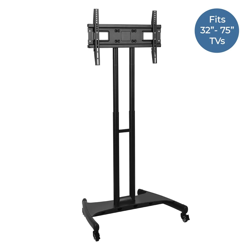 - Portable TV cart designed for use with 32" to 75" TVs weighing up to 45.5kg