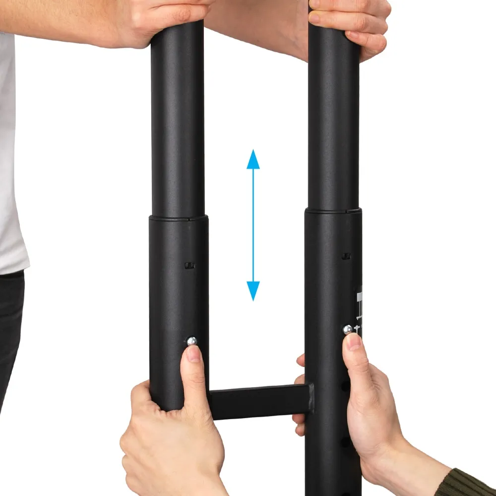 - Black powder coated steel offers durability, with hollow tubes providing cable management
