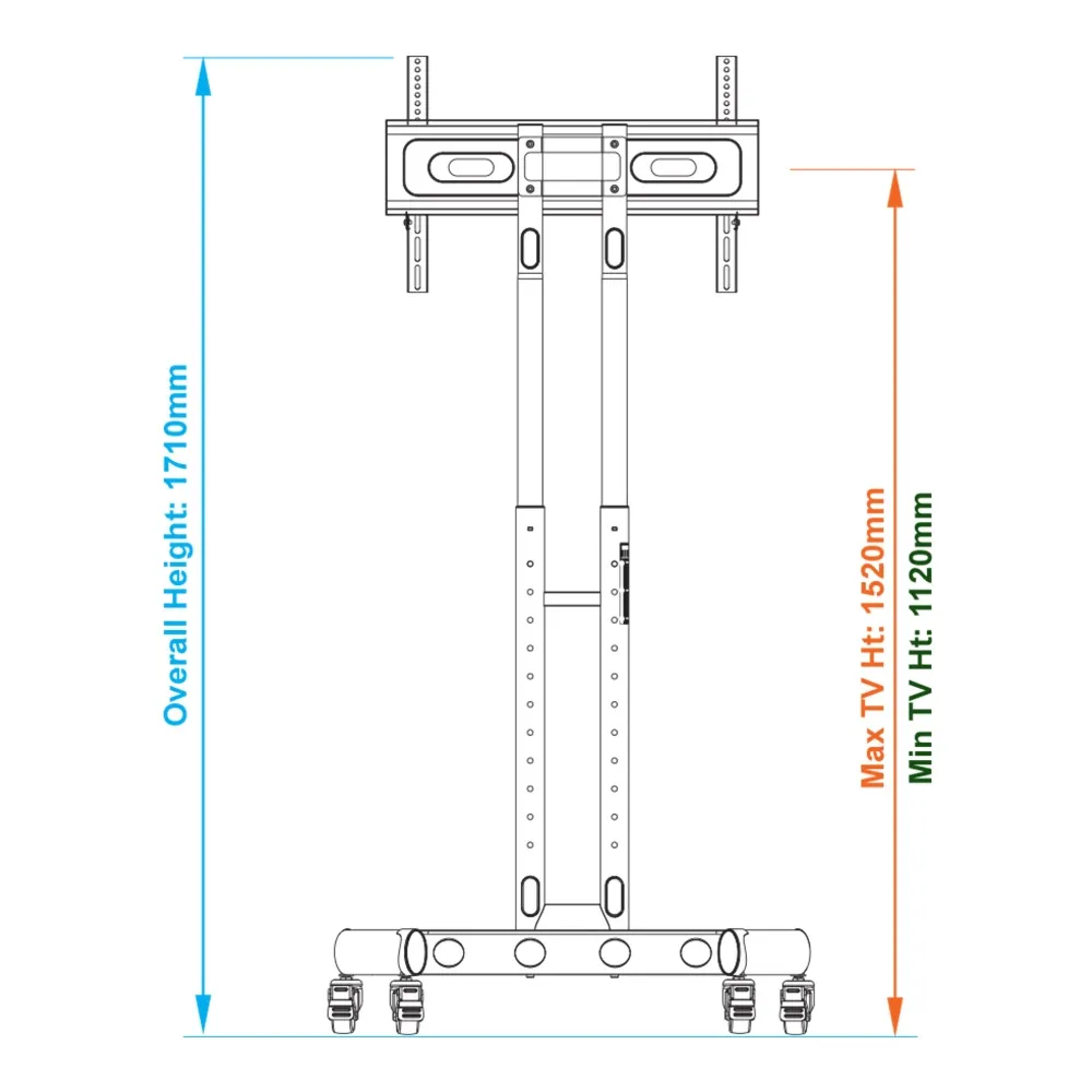 - Height adjustable design displays flat screens between 1120 & 1520mm from floor