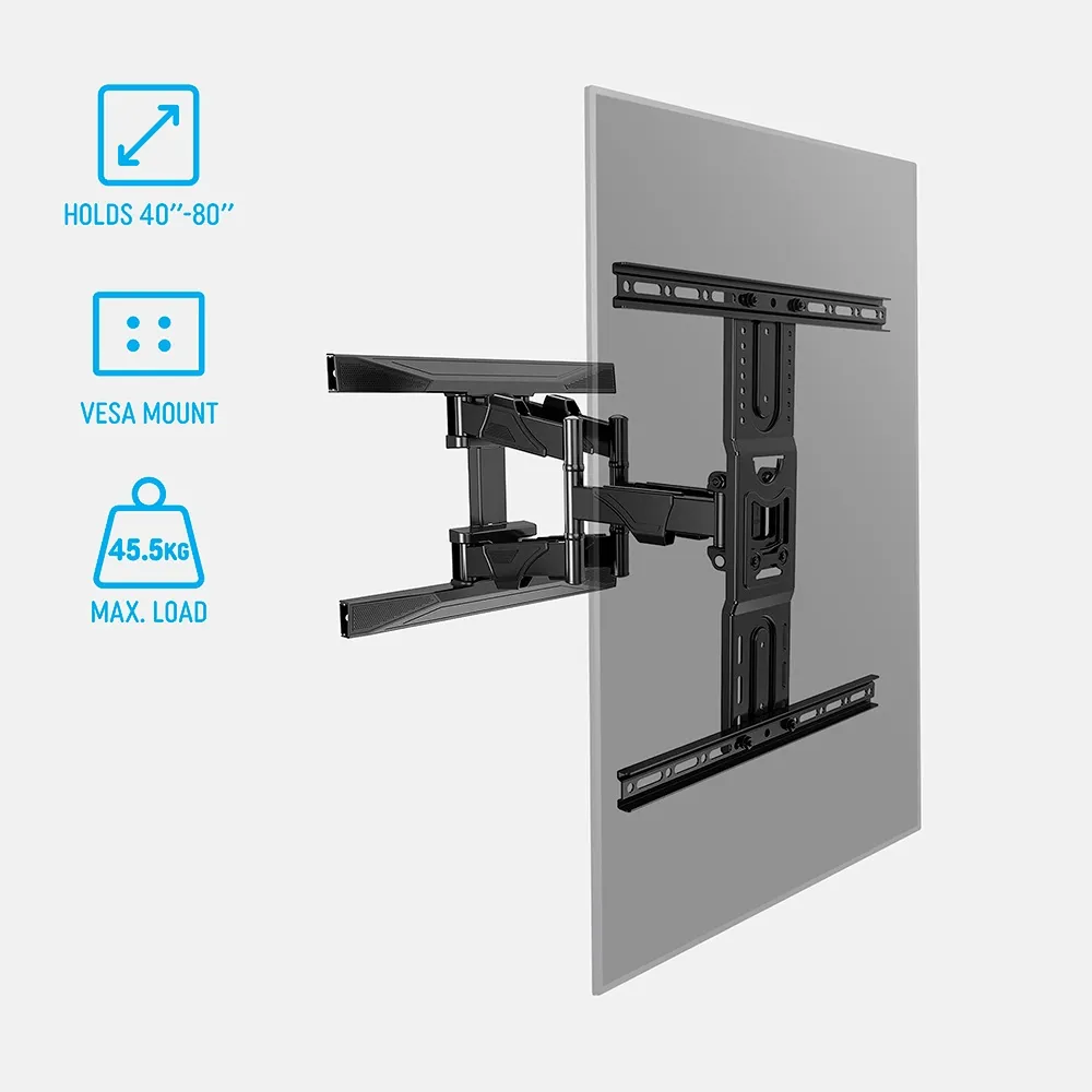 - Universal bracket holds a 40" to 80" flat screen TV weighing up to 45.5kg
