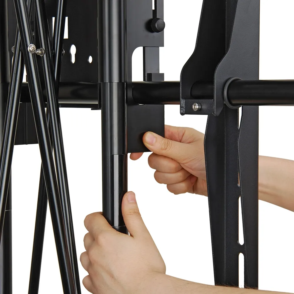 There are two universal mounts for displaying 32" - 65" screens that weigh up to 36kg on each side. The mount is able to hold TVs with VESA hole patterns 200 x 200mm to 600 x 500mm to easily work with most screen models & sizes. The stand is made from black aluminium for a lightweight & durable display, with the truss design providing an eye-catching look. The modular display is designed to easily be moved between events, with the entire display able to fit inside the included carrying case. This case features wheels as well to easily move the kit into place for set-up.
