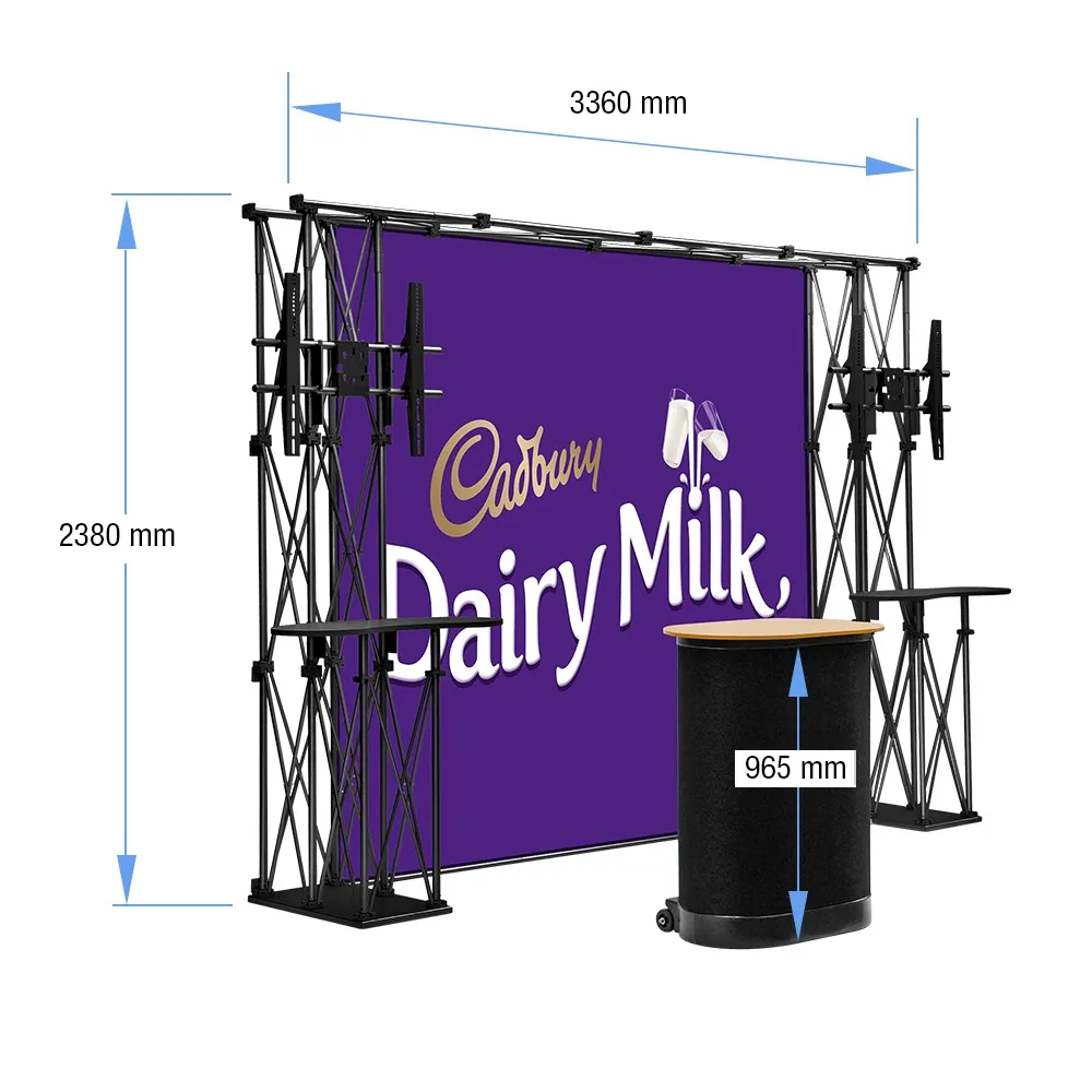 • Black aluminium offers durable yet lightweight display, with truss design for extra appeal