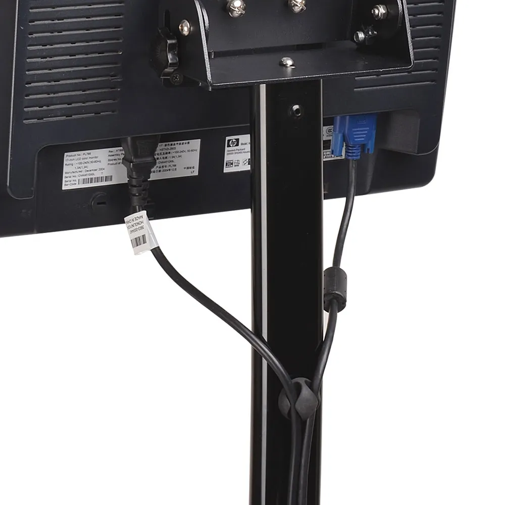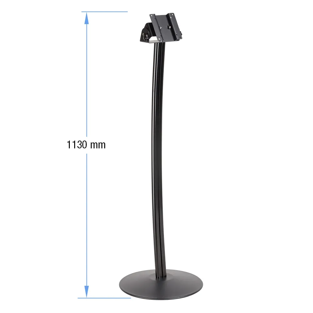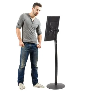 This free standing TV stand is made from aluminium to provide a durable display that holds up well to the rigors of daily use. The black finish provides a sleek design that works well within any décor. The slight curve to the pole adds style to your location. Assembly is easy with only simple tools required to set-up the display for use at your business. Order today to help create a freestanding kiosk at your location!