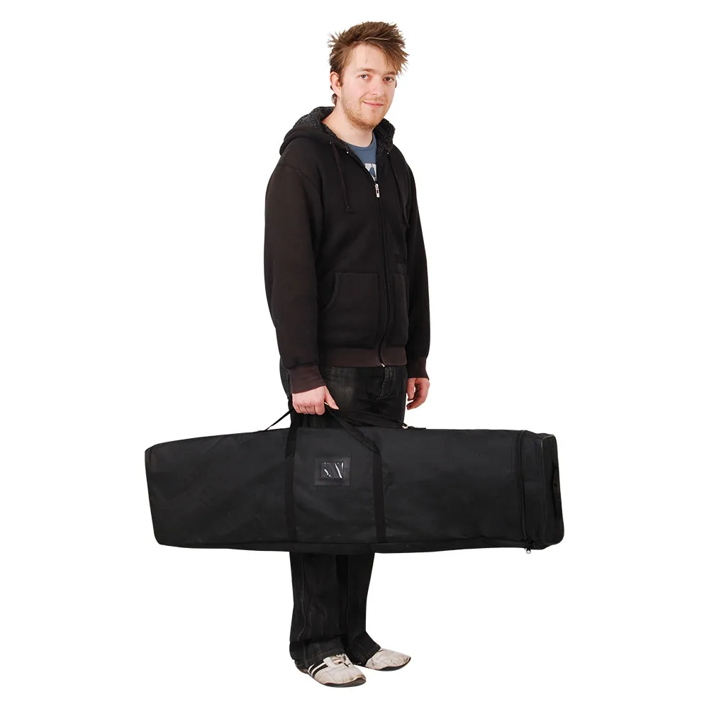 • Free standing TV stand is portable display with carrying bag included for easy transport
