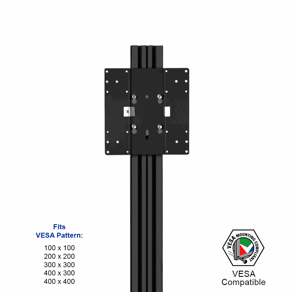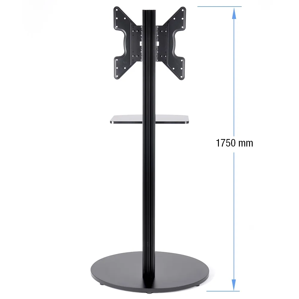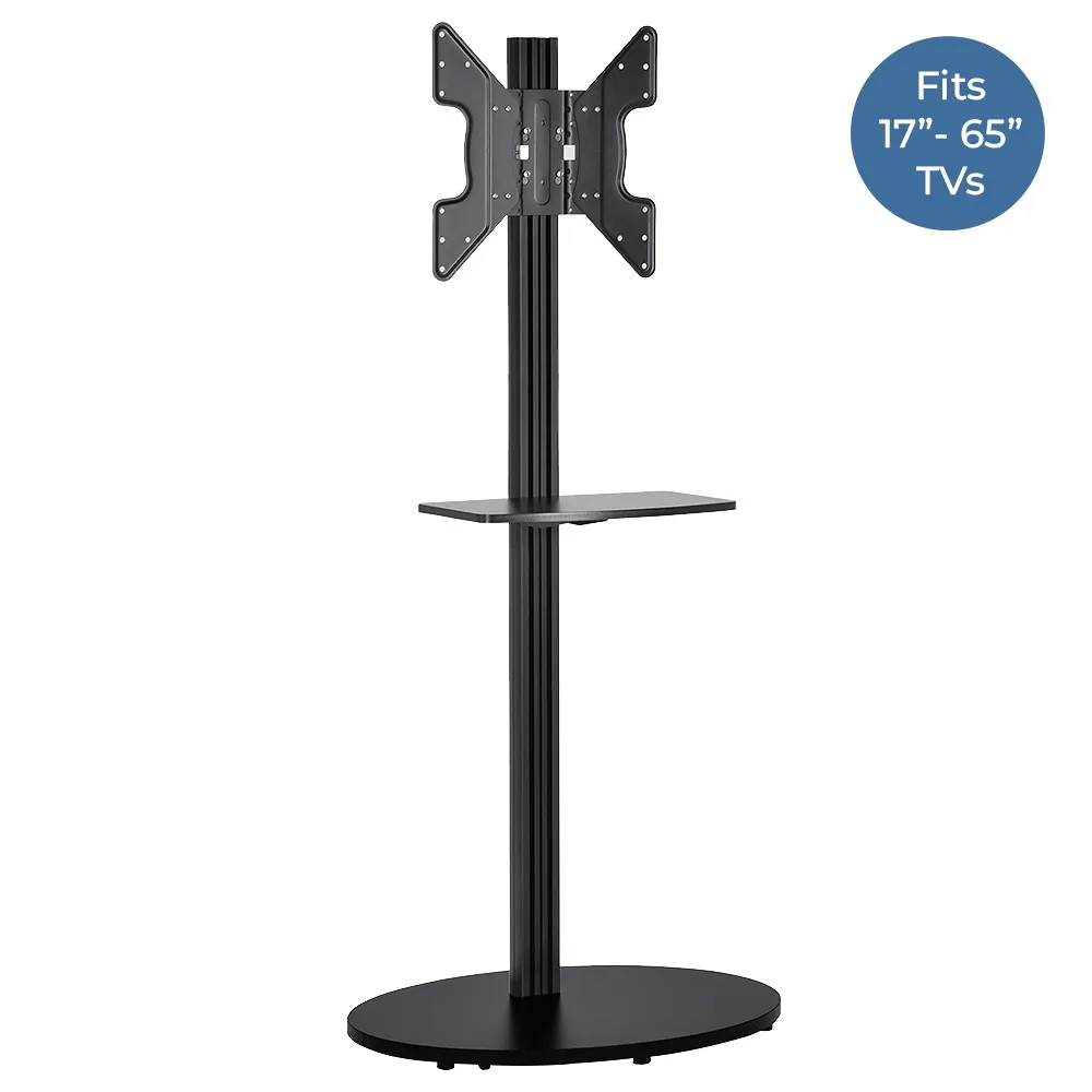 Television mounts, LCD floor displays, and other TV stands are designed to hold 17" - 65" flat screens that weigh less than 45kg. The tilting mount makes viewing the display easy, and is VESA compatible for 100 x 100mm through 400 x 400mm hole patterns. There is also an adjustable shelf included with the stand for placing projectors, laptops, tablets, and DVD players to run the presentation on your screen!