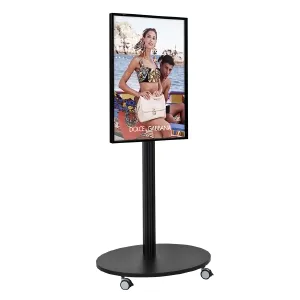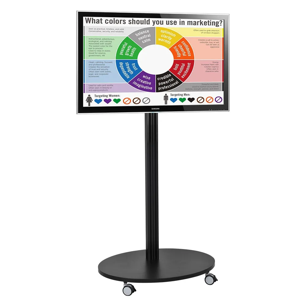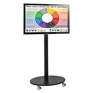 A plasma stand with wheels makes it easy to position the display where you want on a sales floor or in your booth at a trade show hall. The LCD television stands uses locking wheels that stabilise the display once in a desired position to ensure it remains in place. This flat panel display is made from aluminium to hold up well in public places without issue, and the black finish provides a sleek design that helps draw the attention of customers.