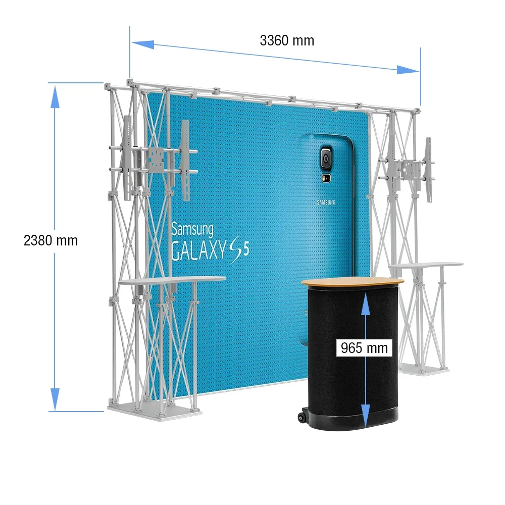 The fabric attaches to the truss frame securely with velcro, which can easily be attached and detached when breaking down after the show is finished. Order today for faster despatch to your business to be used for your next event!