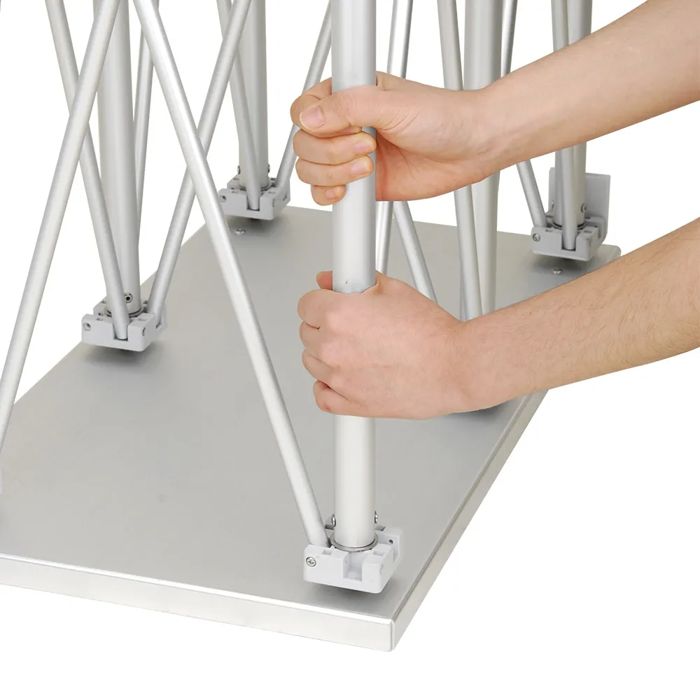 - Entire display sets up without any tools needed, thanks to self-screwing rods