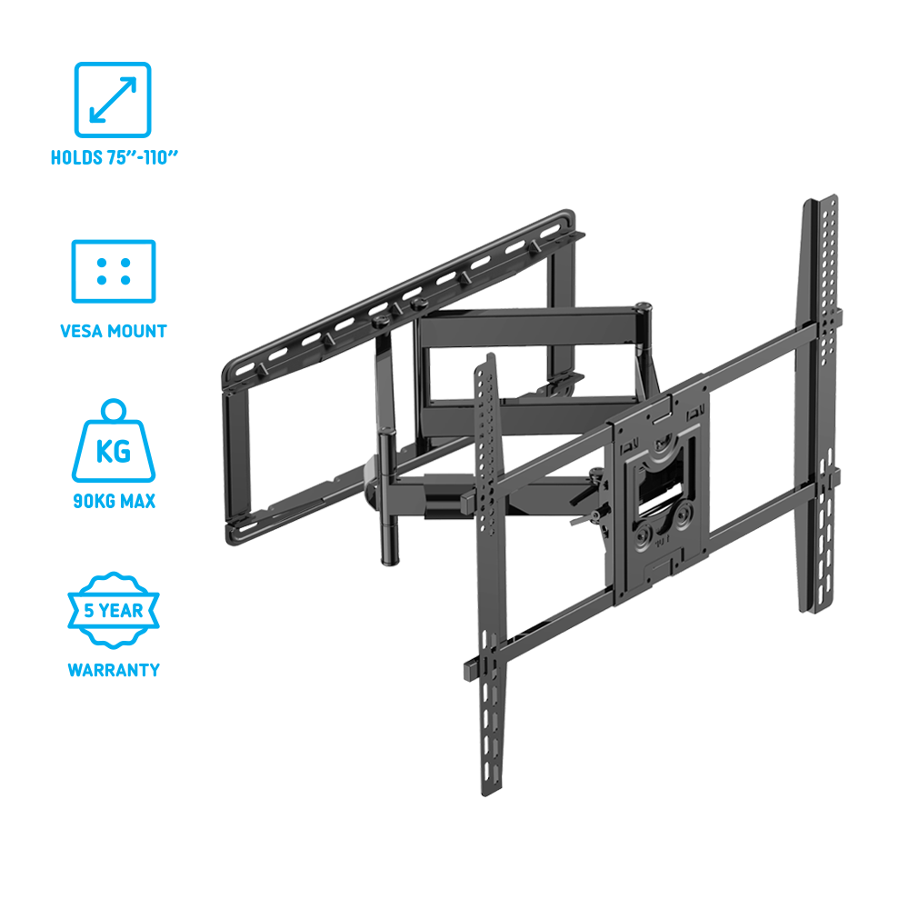 - TV wall mount supports 75"–110" screens up to 90 kg load capacity