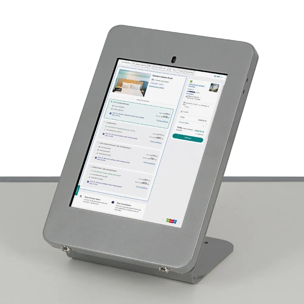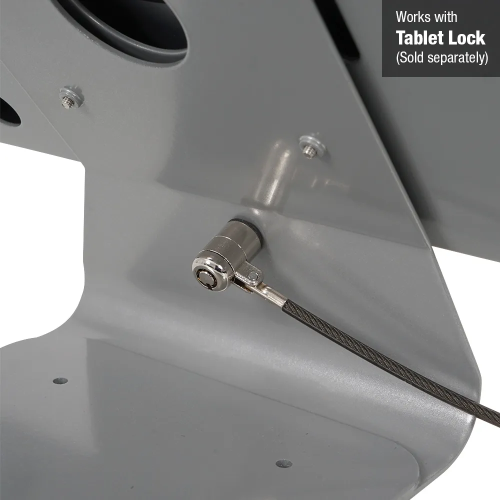 Use this iPad stand for POS system at your location to have the device securely mounted for employees and customers to use. There are two locks on one side of the mount to keep the device safe during use in public spaces. A Kensington lock slot on the holder allows for a cable lock, sold separately, to be utilised as an additional security measure depending on your circumstances. Additionally, the home button is covered on this model to prevent full access to the device and keep users on the App that you have already loaded.