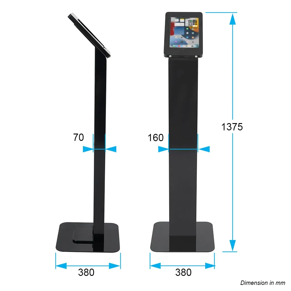 - iPad floor stand can display tablets in portrait or landscape orientation depending on needs
