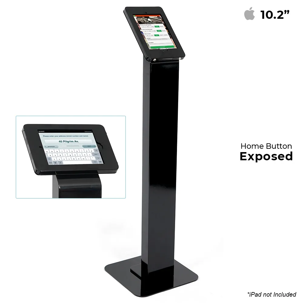 Uses iPad floor stand kiosk get your business to create an interactive experience that will help inform and entertain passes by. This stand is designed to hold Apple iPad 10.2”, which includes iPad 2019 (7th generation), 2020 (8th generation), and 2021 (9th generation). The mount of the display has both the camera and the home button exposed to allow for creative uses at any location. The versatile display is able to display your device in either landscape or portrait orientation depending on your needs. With the device angled, it's easier for users to interact with the display whilst in use.