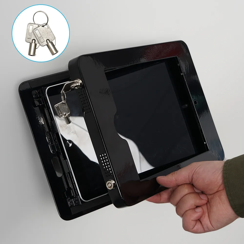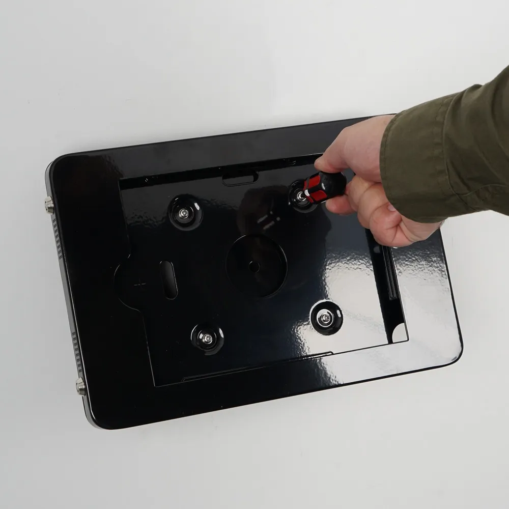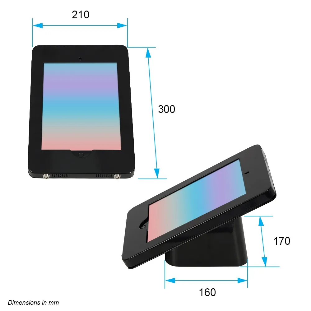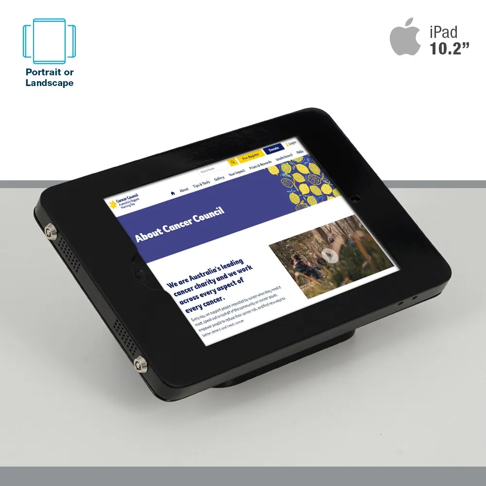 This 10.2 inch iPad wall mount is a versatile display, able to be mounted on both walls and counter-tops depending on the need of you location. The display is designed to hold Apple iPad 10.2”, which includes iPad 2019 (7th generation), 2020 (8th generation), and 2021 (9th generation). This tablet holder can have you iPad placed in portrait or landscape orientation to best fit how your visitors will utilise the device. The home button and camera are exposed on this display, allowing for additional interactions to provide a pleasant experience for patrons of your business.