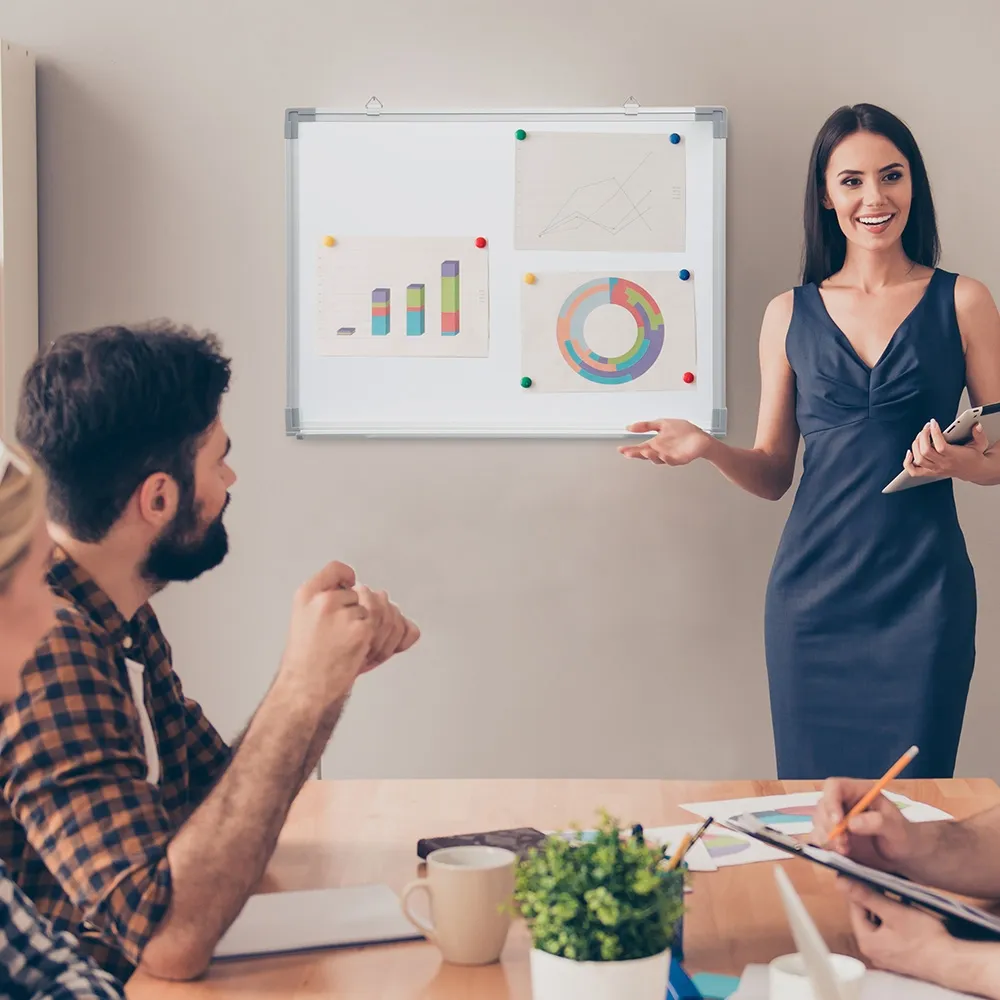 • This small office whiteboard is great value. It features a commercial, easy-clean acrylic writing surface boasting gloss levels of 70 – 80%