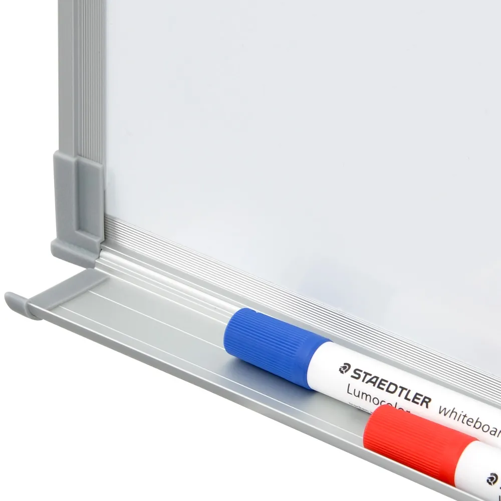 With features such as the commercial writing surface, robust aluminium frame, rounded plastic safety corners and integrated marker tray this cheap whiteboard is great value for money!