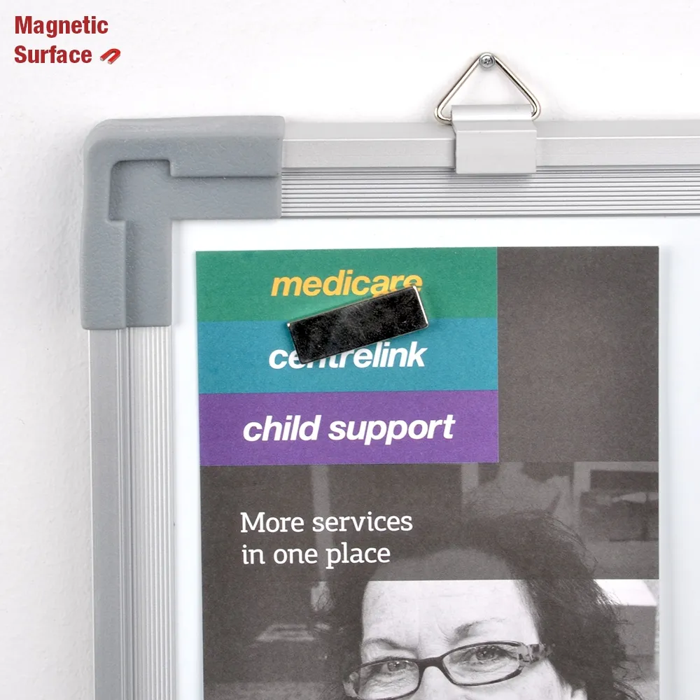 • Tough extruded aluminium frame with rounded safety corners, marker tray & sliding hanging eyelets