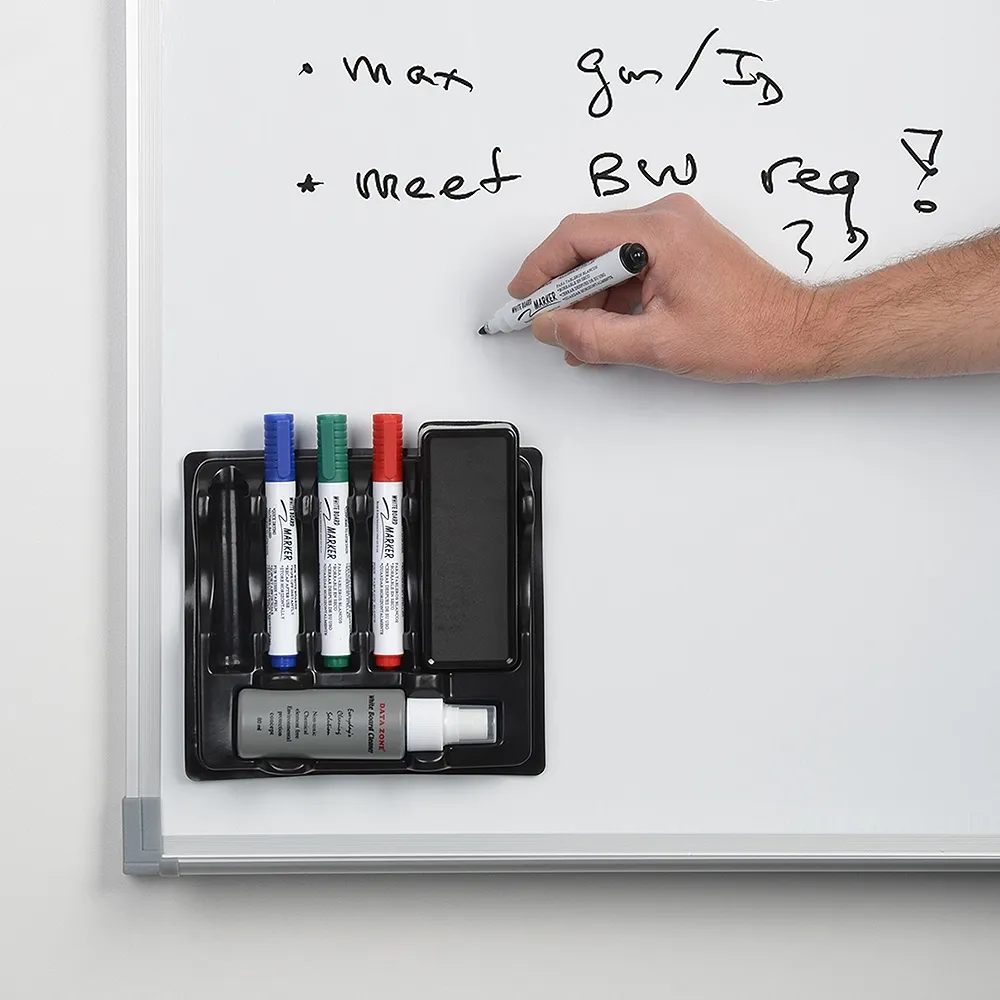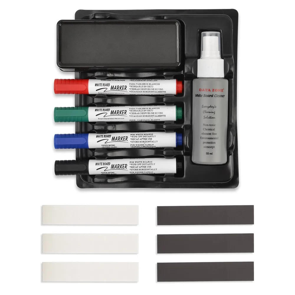 • Marker kit is included with (4) dry erase marker colours, cleaning solution & eraser