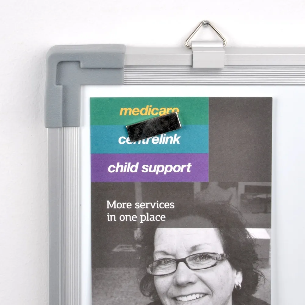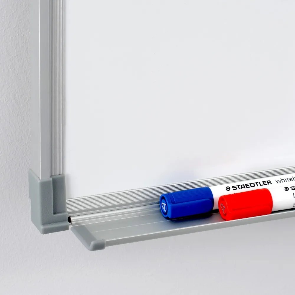 • Steel white board has aluminium frame with rounded plastic corners for safety