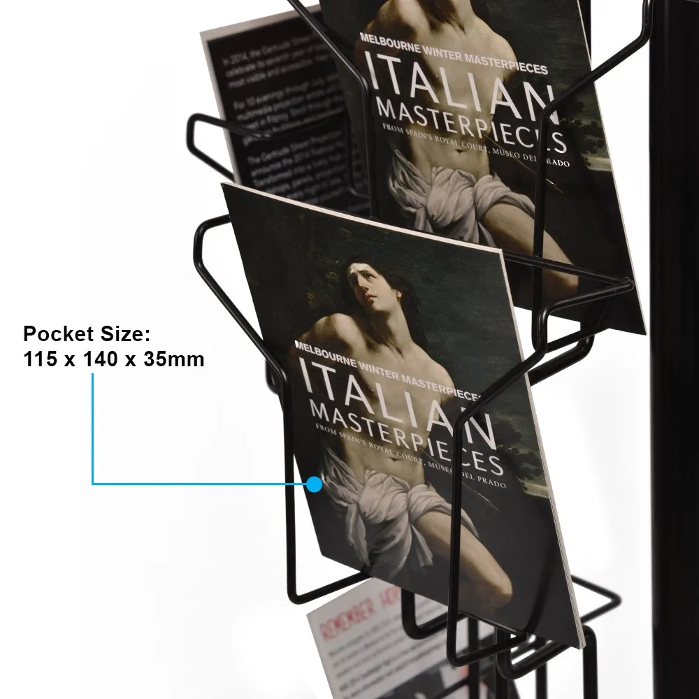 This counter top display is made from black powder coated steel wire to provide a lightweight, stylish, and durable display at a low cost to work within any budget. Designed for daily use, this stand is perfect for retail stores, coffee shops, exhibition halls, cinemas, news agents, museums, gift shops, and more to display their wares in a compact fashion. Order this display by 3pm EST from Slimline Warehouse to receive same day despatch to anywhere in Australia when in stock!
