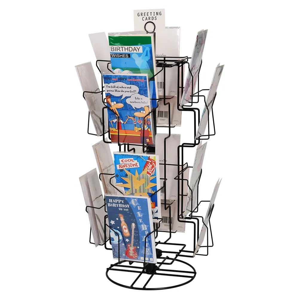 A countertop card spinner helps you increase space for merchandise or customer interaction on your counter by utilising a revolving display! The rotating greeting card rack features (16) pockets on a spinning rack to provide easy access for browsing whilst taking up minimal space. The 345mm diameter base leaves heaps of room for other items to be placed without inhibiting this stand. Each side of the display features (4) pockets on for easy browsing.