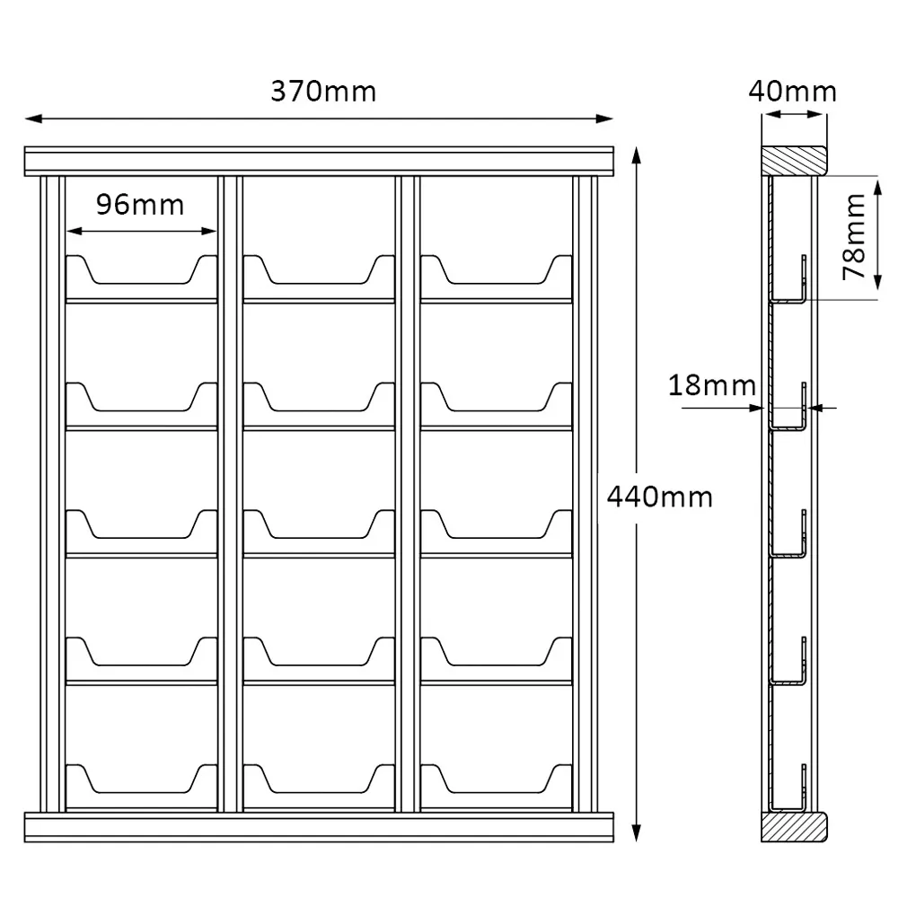 • 370 x 440mm hanging holder has pockets in (3) columns to conserve space