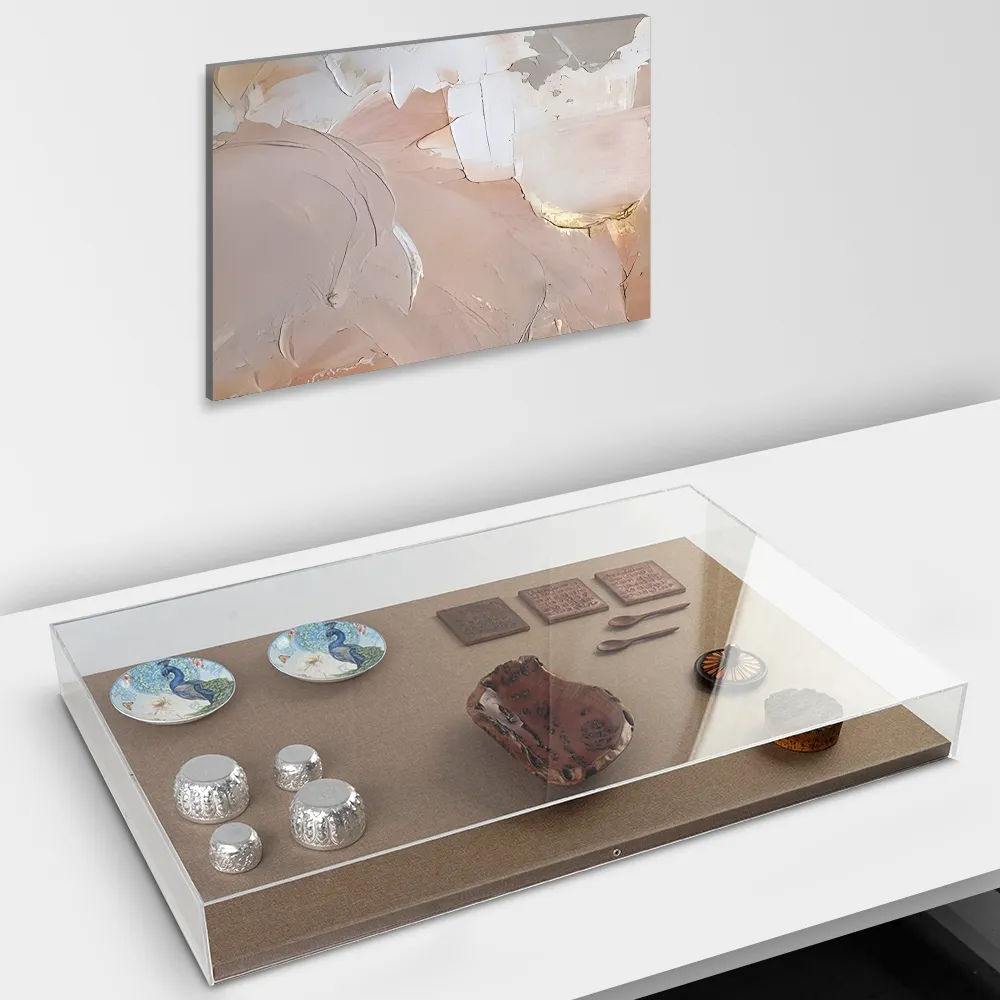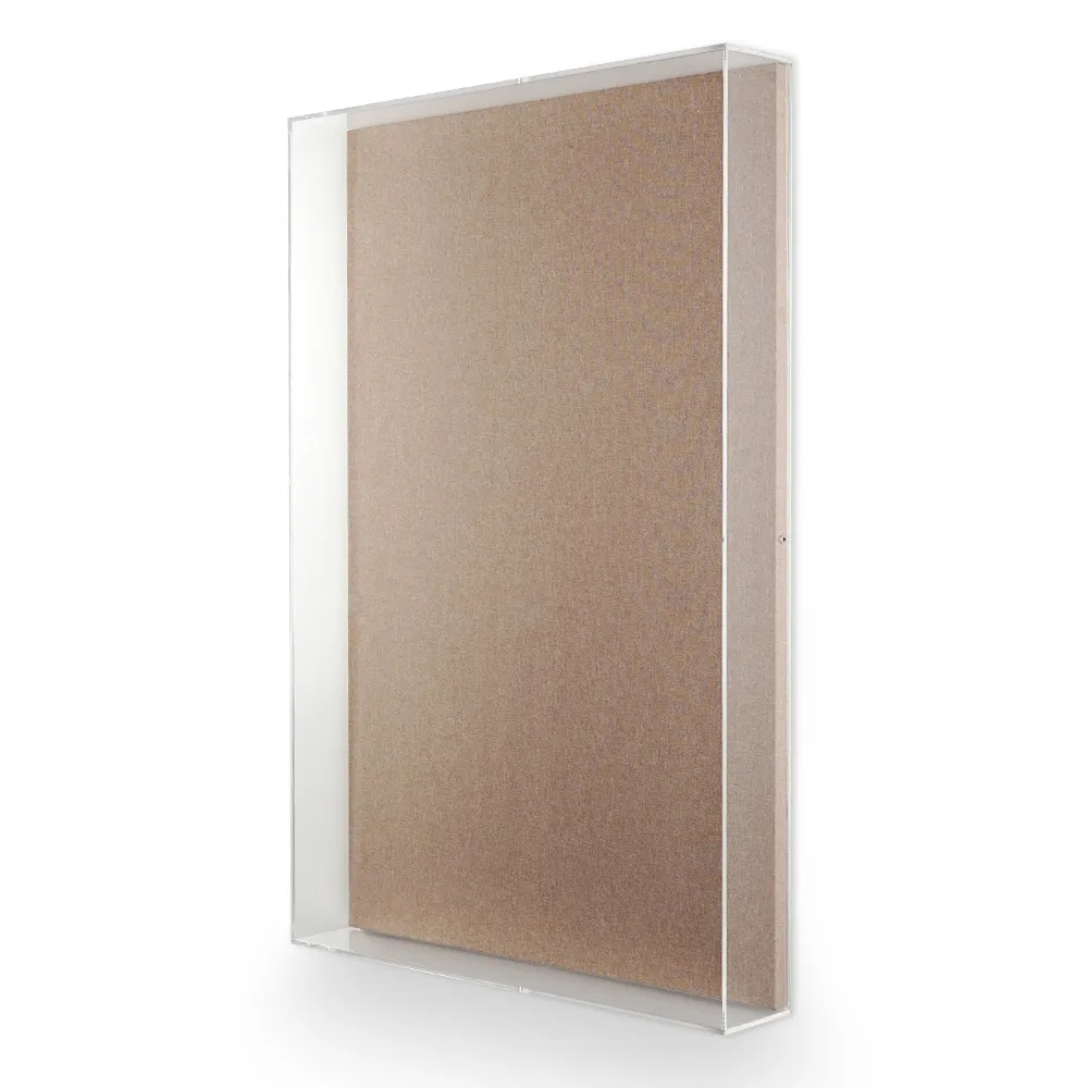 This wall mount shadow box has a linen back that not only creates a contemporary look at home in any environment, but also helps to direct focus to the items that are on display. The interior of the case is 920 x 610 x 80mm to display not only prints but also smaller items such as manuscripts, jewelry, artifacts, and more. The case is designed to highlight items on a wall or countertop, with screws and hooks included to attach paintings to the linen fabric for proper positioning when placed on a wall. Purchase this mounted display case today for an art gallery, retail store, museum, school, business lobby, or even your home!