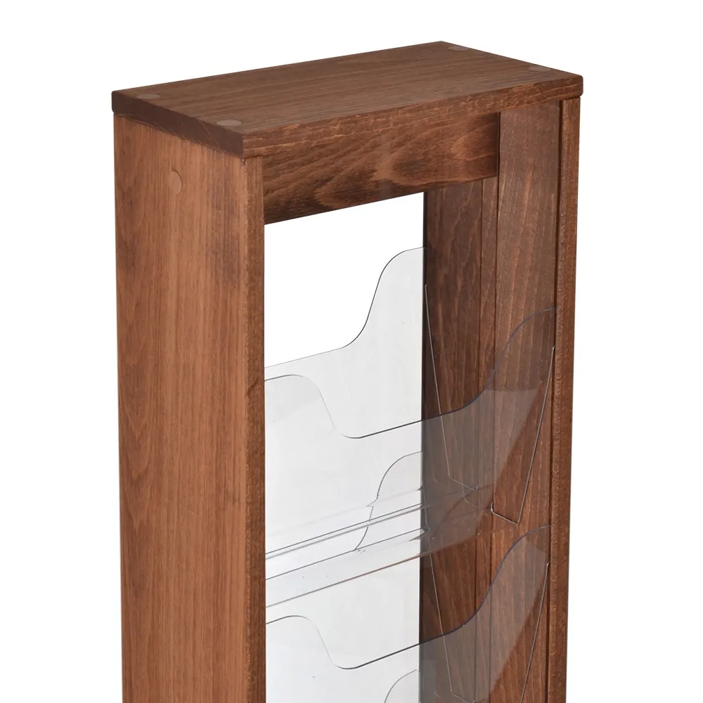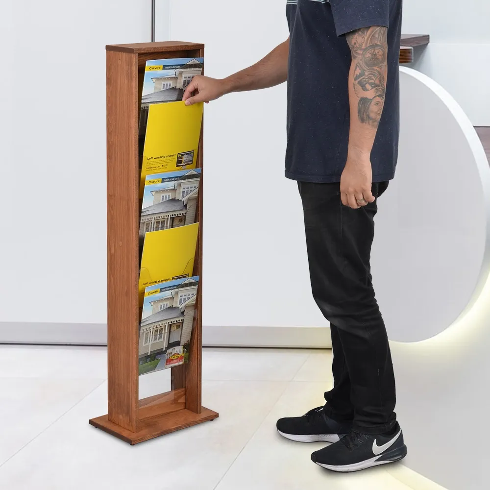 The freestanding brochure holder features a timber build with dark wood finish, offering a stylish look that can work with most decors. This display is easy to assemble in minutes using simple tools, as the unit is shipped knocked down to provide lower shipping costs. Slimline Warehouse offers same day nationwide shipping with this and most other in stock products when purchased by 3pm EST. Buy online today for fast despatch Australia-wide!
